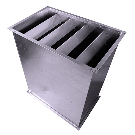 Шумоглушитель прямоугольный используется для понижения уровня шумового загрязнения при работе системы вентиляции или кондиционирования.