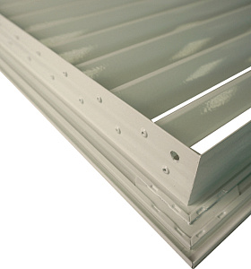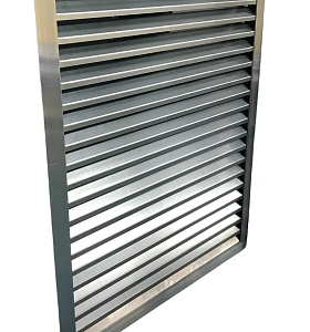 Вентрешетка наружная или для клапанов дымоудаления состоит из рамки и горизонтально расположенных ламелей. Дополнительно может быть установлена защитная сетка для предотвращения проникновения листвы и мелкого мусора. Изделие изготавливается из оцинкованной или нержавеющей стали при помощи лазерной резки и последующей гибки. Решётки ПК Титан имеют прочную конструкцию и презентабельный вид. Могут быть окрашены в любой цвет (по каталогу RAL). Также у нас можно заказать изготовление нестандартных решёток по вашим чертежам и эскизам.